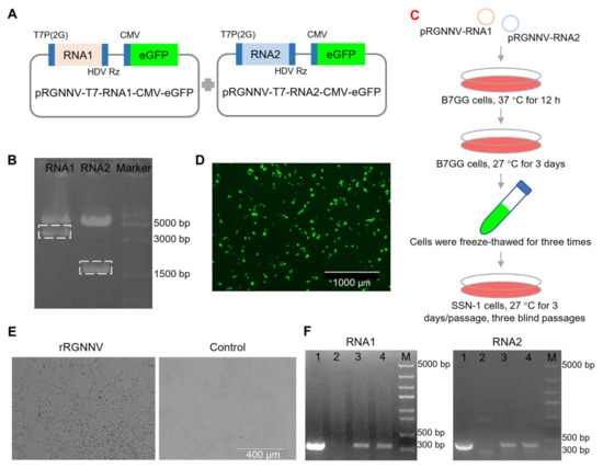 3.1. Construction of the Recombinant RGNNV (rRGNNV) Virus
