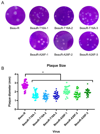 3.4. BeauR-T16A and BeauR-A26F Exhibit Reduced Plaque Size in CK Cells