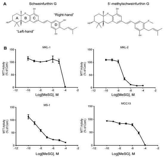 3.1. MeSG Inhibits MCC Cell Metabolic Activity