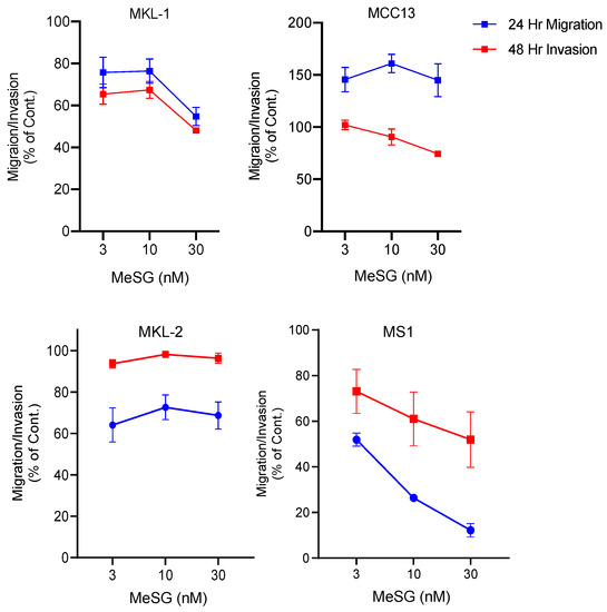 3.2. MeSG Efficiently Impairs Migration and Invasion of Virus-Positive MCC (VP-MCC) Cells
