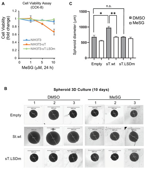 3.4. MeSG Inhibits sT Antigen-Induced Cell Growth Activity