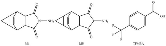 | Metabolism | Tecovirimat is a substrate of UGT1A4 and UGT1A1. Three important pharmacologically inactive metabolites, M4, M5, and TFMBA (Figure 4), have been identified. The glucuronide conjugates of Tecovirimat and M4 metabolite have been identified as the most abundant components in urine [31,34]. Tecovirimat and its M4 metabolites are inducers of CYP3A and CYP2B6. Therefore, the coadministration of Tecovirimat may reduce the therapeutic effect of drugs metabolized by CYP3A and CYP2B6 [31,34]. |