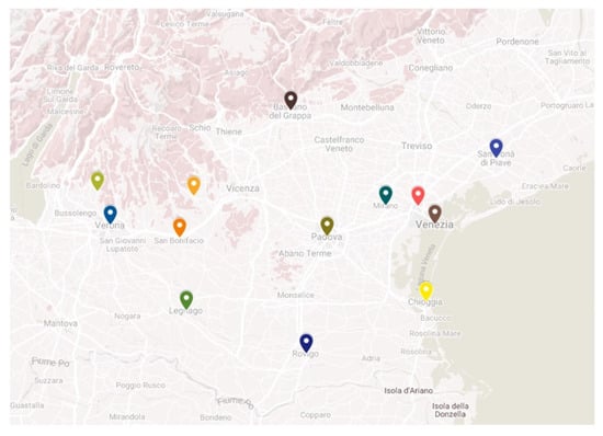 This is a multicenter, retrospective study including all the consecutive patients presenting with an ACS or other acute CV condition (defined as heart failure, arrhythmias, cardiac arrest and venous thromboembolism) hospitalized in 13 different hospitals (Figure 1 and Supplementary File S1) of the Veneto Region, covering a population of 2,554,818 inhabitants during the first (between 15 March 2020 and 30 April 2020) and second (between 15 November 2020 and 30 December 2020) COVID-19 pandemic waves (the 2020 cohort). Conversely, acute CV patients admitted over the same time-windows in 2019 and 2018 were considered as the historical cohorts. Diagnosis of ACS or other acute CV conditions were collected by the single Divisions of Cardiology, using patients’ medical records, clinical charts, hospital discharge letters or other medical documentation and compared with the related administrative codes according to the ICD-9-CM (International Classification of Diseases, nineth revision, Clinical Modification).