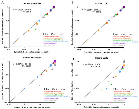 3.6. Limit of Detection of Distant Viral Sequences in Complex Samples