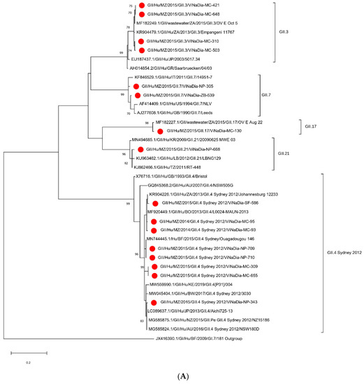 Chilaúle JJ, Munlela B, Mans J, Mabasa VV, Marques S, Bauhofer AFL, Jane G, Anapakala E, Oliveira F, Cossa-Moiane I, et al. Norovirus Genetic Diversity in Children under Five Years Old with Acute Diarrhea in Mozambique (2014–2015). Viruses. 2022; 14(9):2001. https://doi.org/10.3390/v14092001
