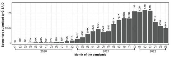 SARS-CoV-2 genomic sequences submitted to the GISAID data repository between January 2020 and June 2022 [12].