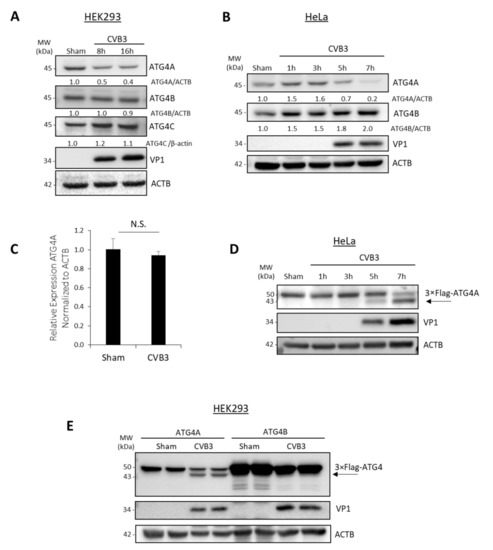 3.1. CVB3 Selectively Cleaves ATG4A but Not ATG4B during Late Infection