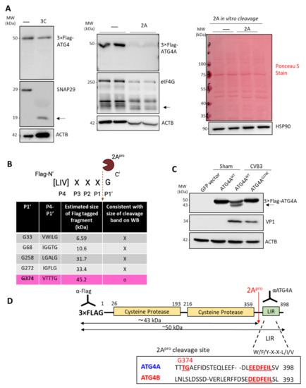 3.2. ATG4A Is Cleaved by Viral Protease 2A before Glycine 374