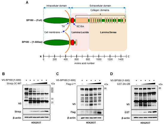Blister formation is a major symptom of FMDV infection [4], and BP180 cleavage by host proteases is known to form blisters in autoimmune diseases [5,8]. FMDV encodes several proteases important for polyprotein processing during viral replication [9]. Therefore, we first evaluated the effect of FMDV proteases on BP180.