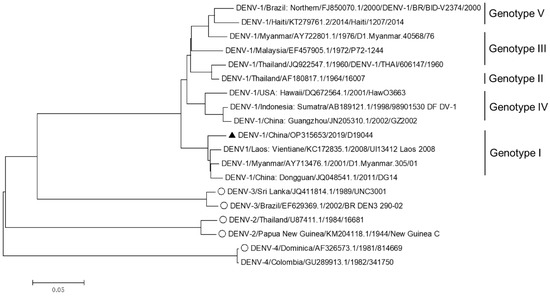 2.4. Phylogenetic Analysis of D19044 and Other DENV Sequences