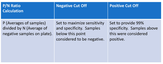 P/N ratio formula was used to set cut-off points for positive, equivocal, and negative results in laboratory-based assays.