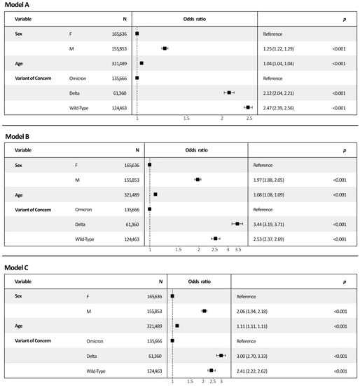 - Peckham, H.; de Gruijter, N.M.; Raine, C.; Radziszewska, A.; Ciurtin, C.; Wedderburn, L.R.; Rosser, E.C.; Webb, K.; Deakin, C.T. Male sex identified by global COVID-19 meta-analysis as a risk factor for death and ITU admission. Nat. Commun. 2020, 11, 6317. [Google Scholar] [CrossRef] [PubMed]