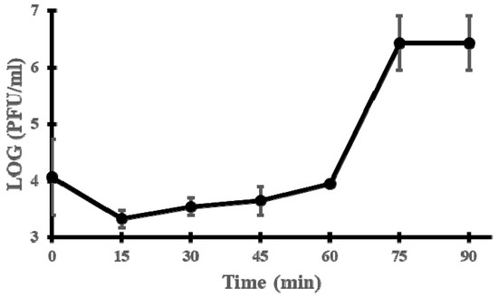 One-step growth curve of phage vB_EfmH_163. Log PFU/mL was measured every 15 min. Means and standard deviations of three independent replicates are shown.