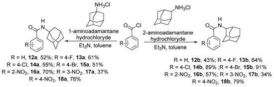 2.1.2. General Method of Synthesis of Amides 12a,b–18a,b