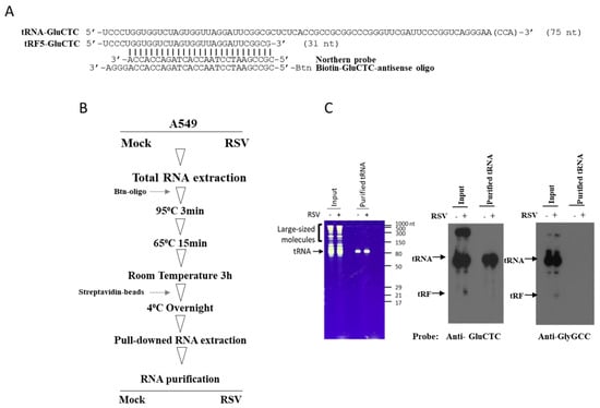 - Deng, J.; Ptashkin, R.N.; Chen, Y.; Cheng, Z.; Liu, G.; Phan, T.; Deng, X.; Zhou, J.; Lee, I.; Lee, Y.S.; et al. Respiratory Syncytial Virus Utilizes a tRNA Fragment to Suppress Antiviral Responses Through a Novel Targeting Mechanism. Mol. Ther. 2015, 23, 1622–1629. [Google Scholar] [CrossRef] [PubMed]