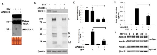 Choi E-J, Wu W, Zhang K, Yuan X, Deng J, Ismail D, Buck DL, Thomason KS, Garofalo RP, Zhang S, et al. Parent tRNA Modification Status Determines the Induction of Functional tRNA-Derived RNA by Respiratory Syncytial Virus Infection. Viruses. 2023; 15(1):57. https://doi.org/10.3390/v15010057