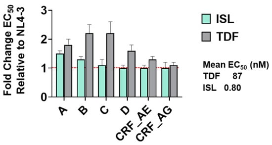3.3. Potency of ISL and TDF against Diverse HIV Subtypes