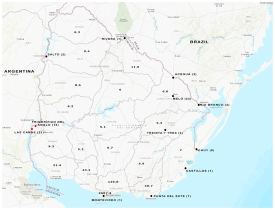 - MSP. Dirección General de la Salud División Epidemiología Departamento de Vigilancia en Salud. Montevideo, Uruguay. Report Provided upon Request for Information Made by the Author (received on 10 December 2022). Available online: https://www.gub.uy/ministerio-salud-publica/tramites-y-servicios/formularios/formularios-division-epidemiologia-departamento-vigilancia-salud (accessed on 18 September 2023).