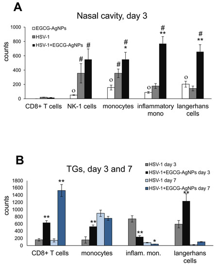 Figure 7). Interestingly, EGCG-AgNPs reduced monocyte infiltration later during infection, most probably due to efficient virus eradication and mounting of an antiviral response by CD8+ T cells and NK cells (