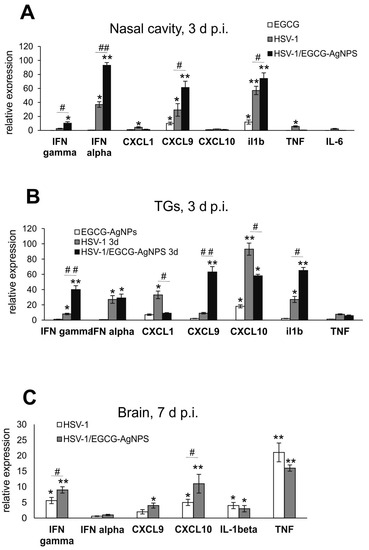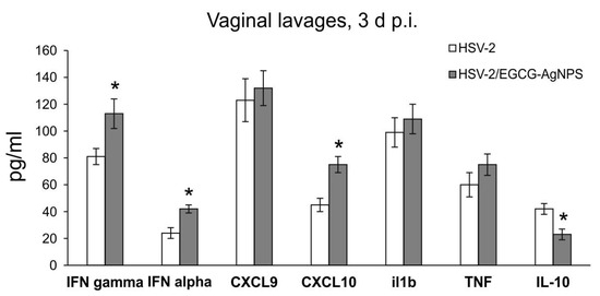 Figure 5). Furthermore, EGCG-AgNPs significantly increased expression of cytokines and chemokines important in anti-HSV response (IFN-α, IFN-γ, CXCL9, CXCL10) (
