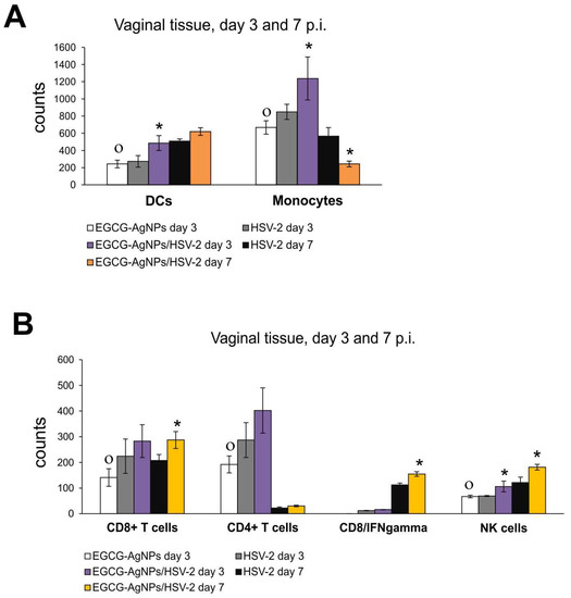 Similar effects of EGCG-AgNP treatment were observed in HSV-2 infected vaginal tissues, where NPs stimulated migration of both monocytes and dendritic cells (