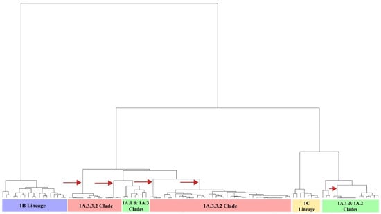 3.4. Antigenic Characteristics of 1B and 1C Lineages Were Partially Influenced by Phylogeny and Geographic Factors