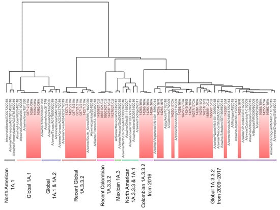 3.3. There Were at Least Five Antigenic Clusters Distributed in Different Regions of Colombia during Specific Years