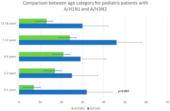Comparison by age category for influenza A/H1N1 and A/H3N2.