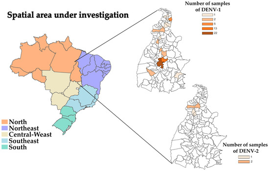 Just as in other Brazilian states, dengue surveillance in Tocantins falls under the purview of local health authorities, particularly the state and municipal health departments [21]. These agencies are responsible for gathering, consolidating, and analyzing data on reported dengue cases sourced from healthcare providers and laboratories [22]. They also oversee the implementation of measures aimed at controlling the spread of the virus [22]. However, it is important to note that the sequencing of viral genomes typically does not feature within the mandatory protocols established by health authorities [23]. To identify the circulating viral serotypes and genotypes, as well as their dispersion patterns, a more targeted approach involving the sequencing of recovered dengue genomes becomes necessary [11], mainly when the dengue vaccine has been introduced in a country, as is happening at the moment in Brazil [24].