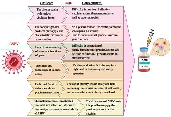 Challenges in ASF vaccine development. This figure was created with BioRender.com.