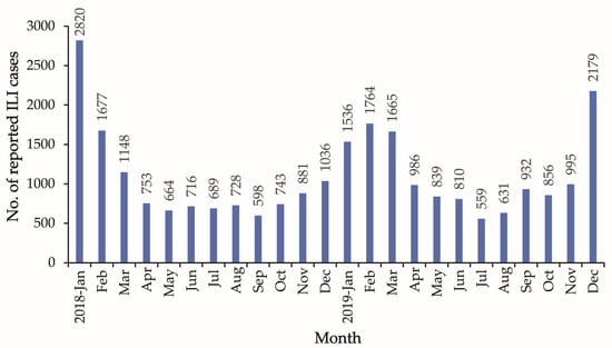 The monthly distribution of reported ILI cases between 2018 and 2019.