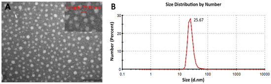Previous studies have shown that VP2 proteins can self-assemble into VLPs with a diameter of 25 nm [21]. To determine whether the VP2 proteins expressed by E. coli were capable of forming VLPs after purification with IEC and HIC, the purified VP2 proteins were analyzed using TEM and DLS. TEM images of the purified VP2 revealed that it did self-assemble into VLPs (Figure 2A). The DLS results showed that the VLP diameter was about 25 nm and the size distribution was highly uniform (Figure 2B).