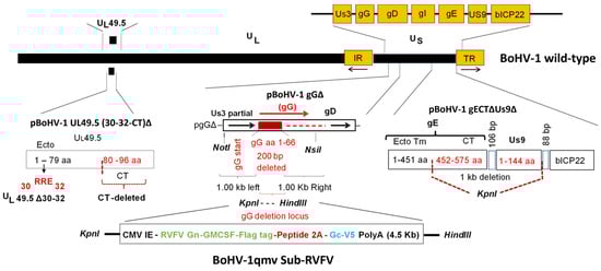 2.3.2. Construction of BoHV-1qmv Expressing RVFV Gn-GMCSF-Gc Expression Cassette (BoHV-1qmv Sub-RVFV)