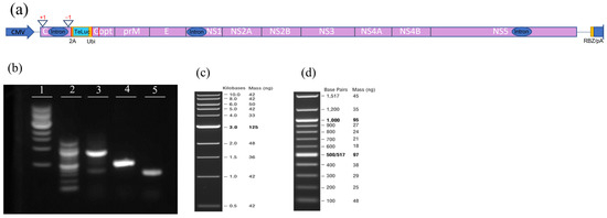 - Volkova, E.; Tsetsarkin, K.A.; Sippert, E.; Assis, F.; Liu, G.; Rios, M.; Pletnev, A.G. Novel Approach for Insertion of Heterologous Sequences into Full-Length ZIKV Genome Results in Superior Level of Gene Expression and Insert Stability. Viruses 2020, 12, 61. [Google Scholar] [CrossRef]