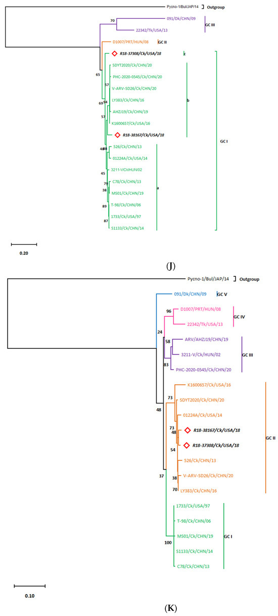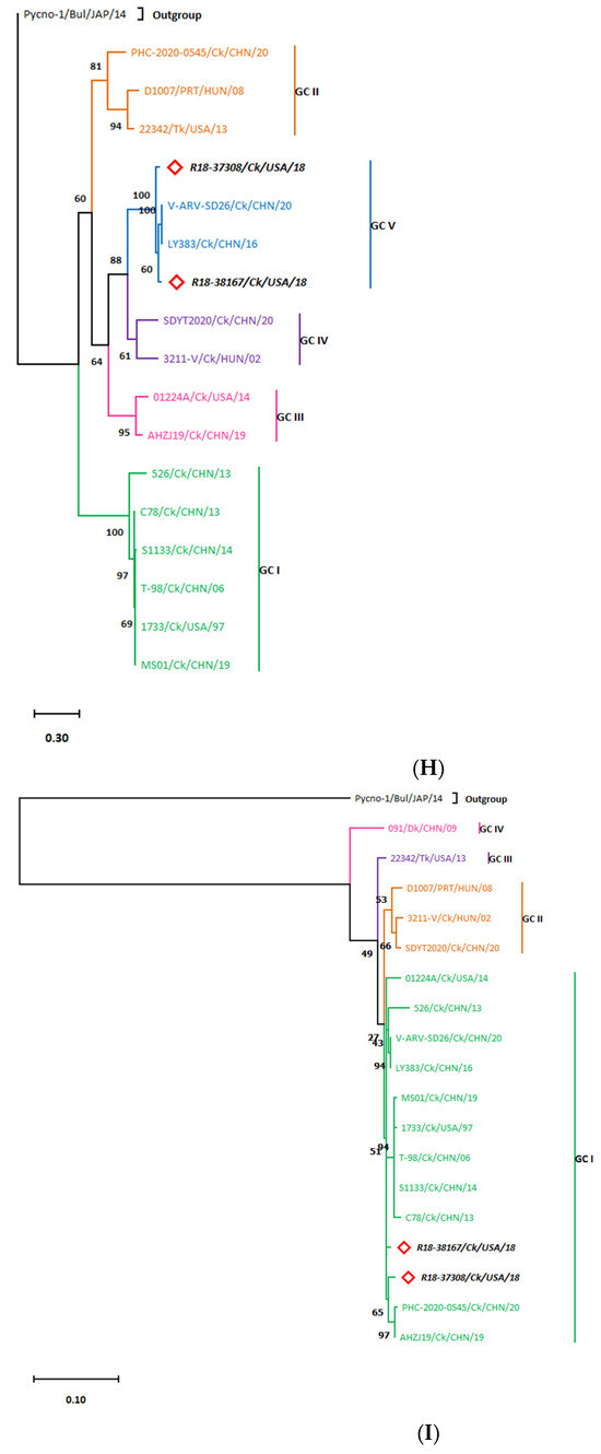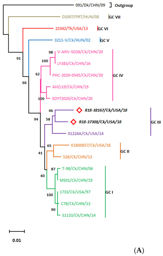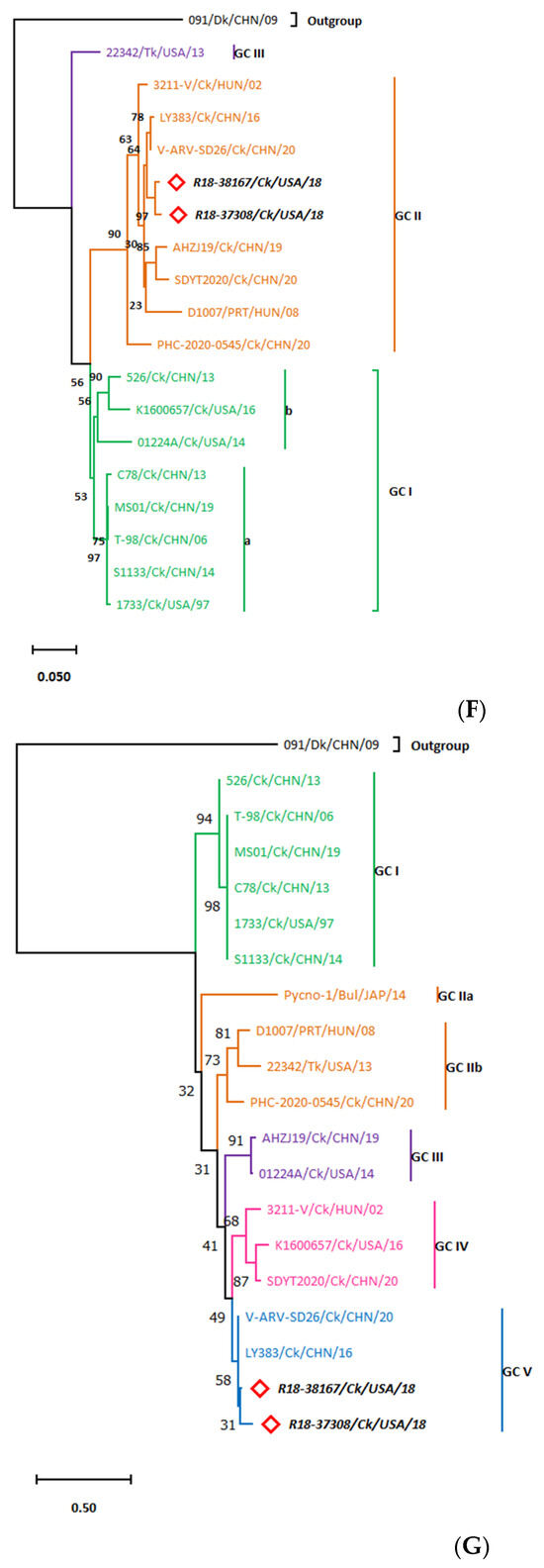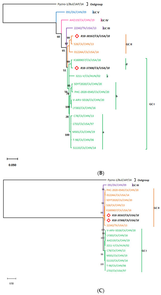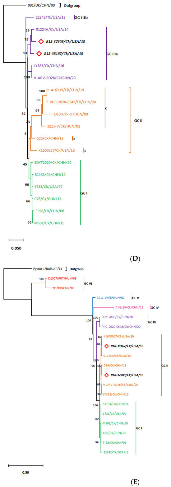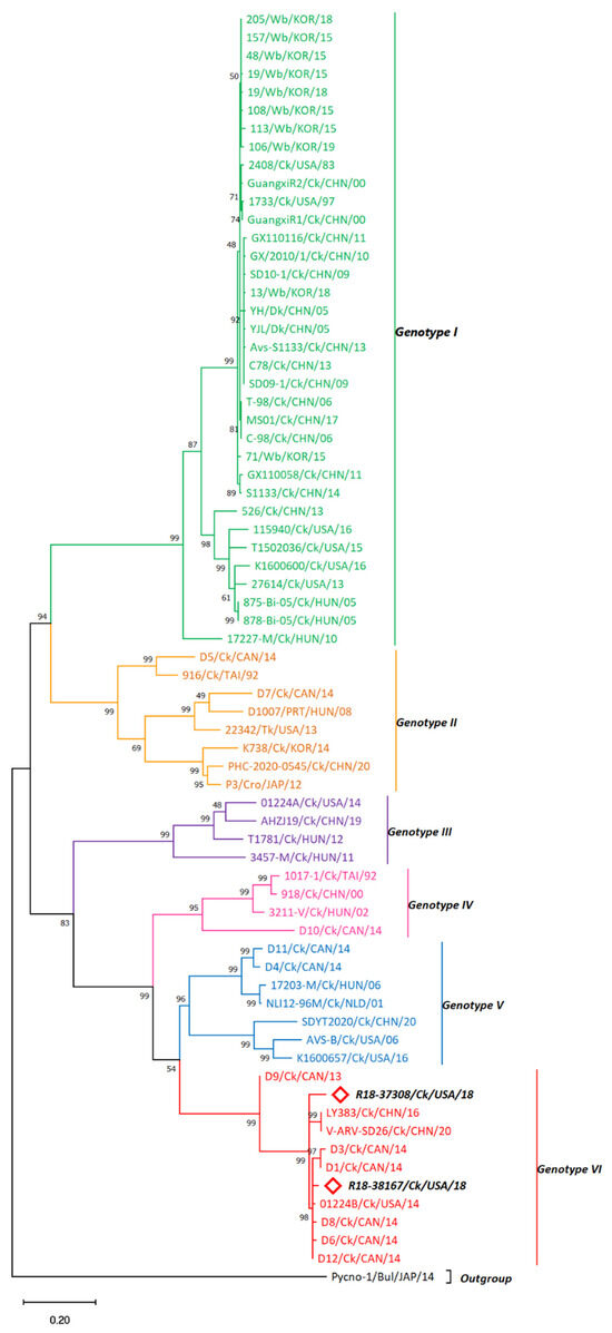 3.2. σC-Based Genotyping Determined That R18-37308 and R18-38167 Clustered with Genotype VI