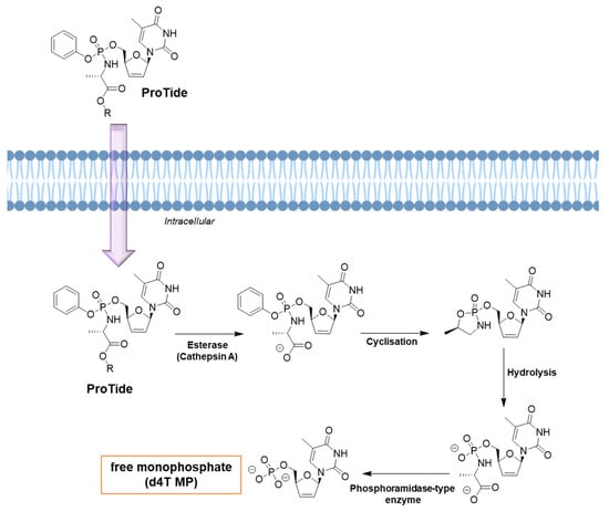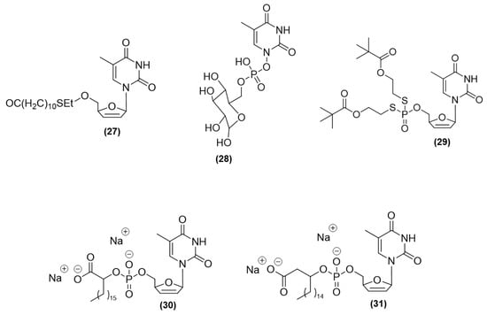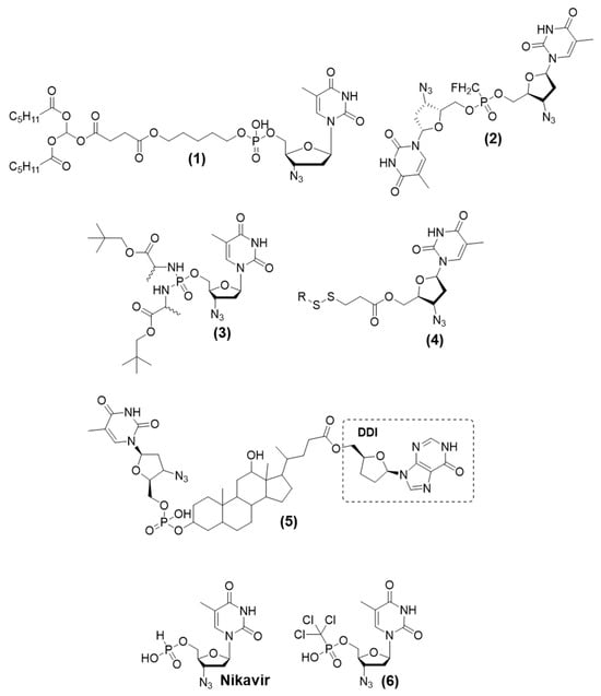 Figure 1). It exhibited the best antiviral activity, as it could efficiently deliver the monophosphate form of the parental AZT nucleoside into cells. This prodrug (