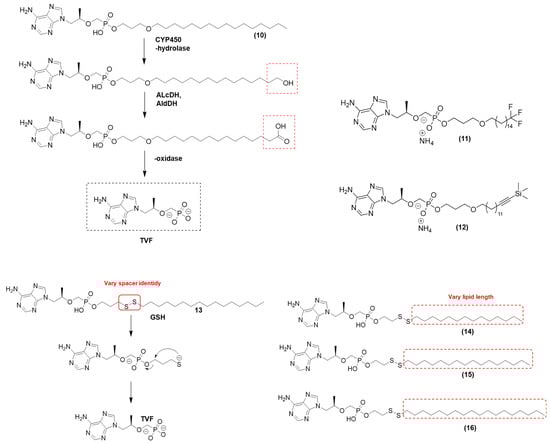 The synthesis of AZT-glycerolipid prodrugs showed that this method can be used to develop liponucleosides. It can mimic the metabolism of natural triglycerides and can be directly transported to the lymphatic system without undergoing primary metabolism; thus, its bioavailability is high. Shastina et al. (2013) synthesized molecules that act as AZT prodrugs, with the drug conjugated to functional phosphorus groups. In studies on chemical stability, the phosphodiester derivative (compound (
