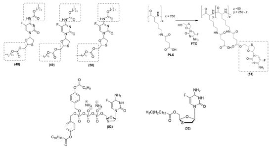 Agarwal et al. (2013) prepared and evaluated FTC-based ester conjugates against cell-free and cell-associated HIV-1 viruses [