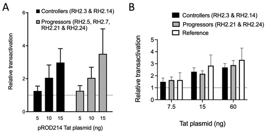 Nonetheless, we considered that Tat transactivation potential may have co-evolved with the LTRs, thereby motivating the efforts to clone autologous Tats to compare LTR transactivation between controllers and progressors (Figure 7B). This work confirmed the absence of transcriptional differences between controllers and progressors in cell-based assays.