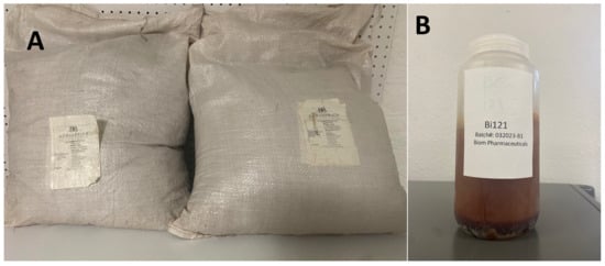 (A) P. sidoides root powder batch used to prepare Bi121. (B) Prepared Bi121 extract from the Pelargonium root powder.