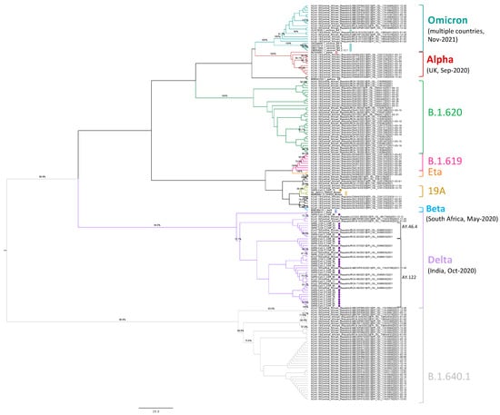 - Hodcroft, E.B. CoVariants: SARS-CoV-2 Mutations and Variants of Interest. 2021. Available online: https://covariants.org/ (accessed on 15 May 2022).