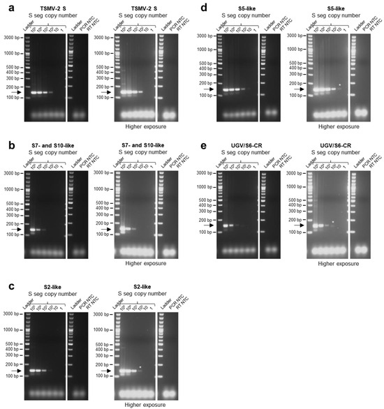| F4 | 5′-GTGCAGGCATAACCAACTC-3′ | 19 | 0.4 | 61.5 | TSMV-2, ArBV-1, ABV-2, UGV-1-4/S6, S9, UGV/S6-CR-wild4 | Other ArBV-1, S2, S2-like, S3, S4, GGV, NL-3, ABV-1, other UGV-1-4/S6 | PAV-1, UHV-1 | |