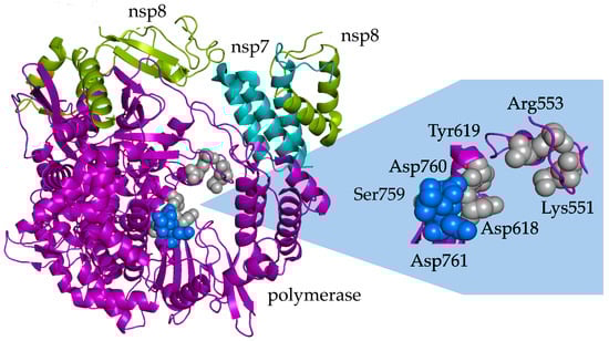 - Vicenti, I.; Zazzi, M.; Saladini, F. SARS-CoV-2 RNA-dependent RNA polymerase as a therapeutic target for COVID-19. Expert. Opin. Ther. Pat. 2021, 31, 325–337. [Google Scholar] [CrossRef]