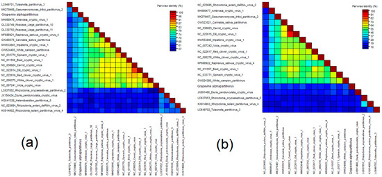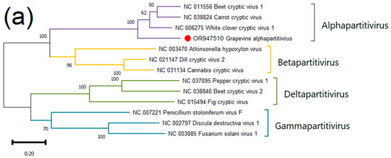 - Vainio, E.J.; Chiba, S.; Ghabrial, S.A.; Maiss, E.; Roossinck, M.; Sabanadzovic, S.; Suzuki, N.; Xie, J.; Nibert, M. ICTV Virus Taxonomy Profile: Partitiviridae. J. Gen. Virol. 2018, 99, 17–18. [Google Scholar] [CrossRef]