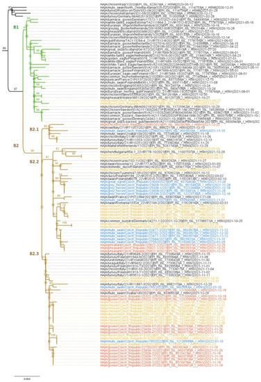 3.4. Molecular Epidemiology of the Czech H5N1 2021/2022 Viruses