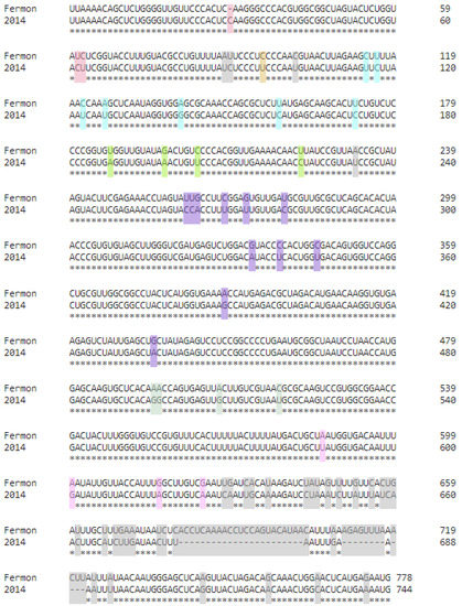Homologous Sequences Used in RNA Folding of the Fermon and 2014 strains.