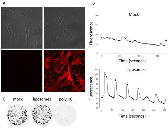 - Hare, D.N.; Collins, S.E.; Mukherjee, S.; Loo, Y.M.; Gale, M., Jr.; Janssen, L.J.; Mossman, K.L. Membrane Perturbation-Associated Ca2+ Signaling and Incoming Genome Sensing Are Required for the Host Response to Low-Level Enveloped Virus Particle Entry. J. Virol. 2015, 90, 3018–3027. [Google Scholar] [CrossRef] [PubMed]
