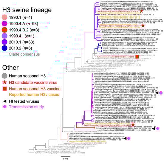 3.1. Genetic Characterization of Dominant U.S. Swine H3N2 Strains