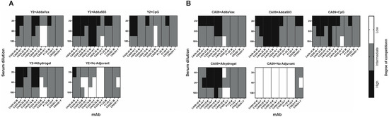 3.2. Serum Antibody Epitopes Are Similar between Adjuvants following Y2 Immunization