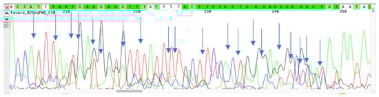 Electropherogram showing the sequence of samples in which more than one SARS-CoV-2 variant was present.